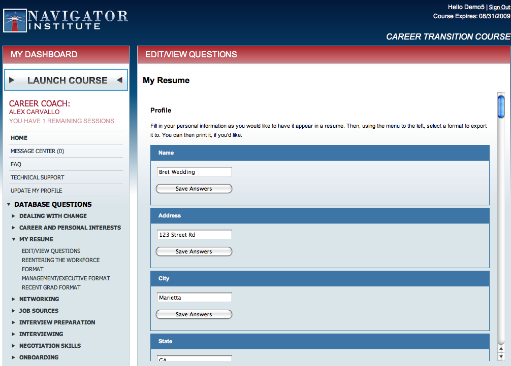 With some resume writing services charging over $700 for a single resume, the Navigator Institute's Resume Builder is a unique feature and an extraordinary value. Not only is it included without additional charge, you can produce quality resumes in a fraction of the time it would otherwise require.
